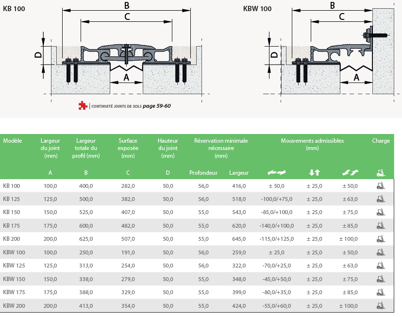 La force exercée sur le profilé est transférée à la plaque centrale en aluminium. Le profilé peut se déplacer librement en cas de tremblement de terre. La série KB est fournie de série avec un joint étanche.