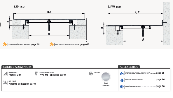 Profilés couvre-joints pour joints de 150 à 250 mm.