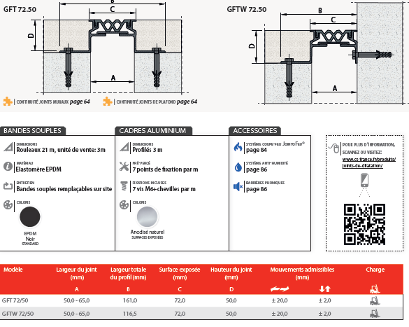 Profilés couvre-joints encastrés pour usage intensif. Conçu pour une amplitude de +/- 20 mm.