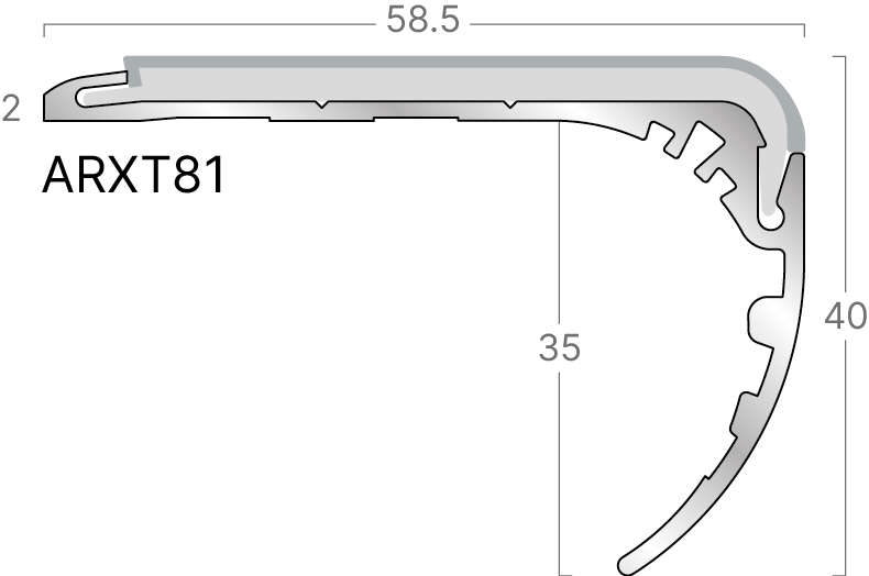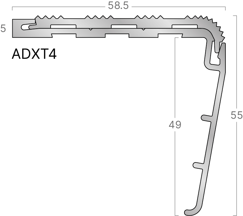 De AXT-serie bestaat uit een grote hoeveelheid types trapneuzen die geschikt zijn om op harde vloerbedekkingen of onbeklede trappen te worden geplaatst. De serie wordt gecompleteerd met enkele trapprofielen voor kunststof vloerbedekkingen met een voorzijde 2 mm. dik